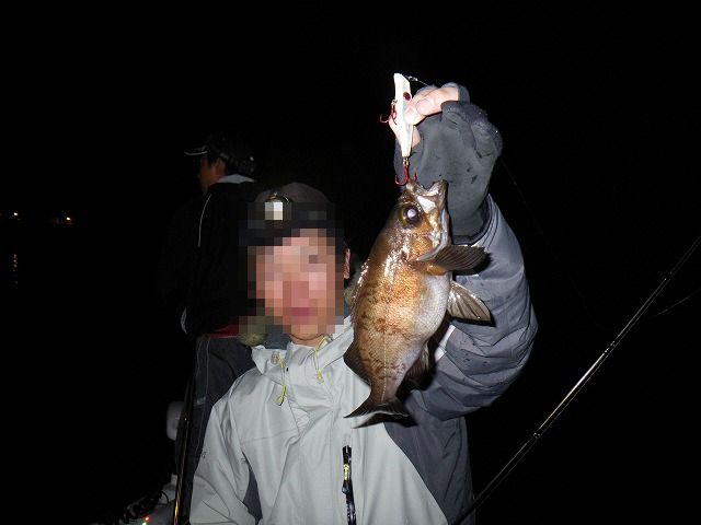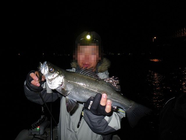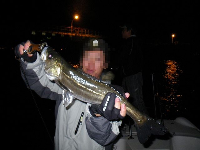 ジギング筋肉痛もほぼ回復し 急遽、きよさんの船に乗せていただける事になり 出船!! いつ見てもハンマーヘッド イイ船です♪♪ 以前、デイゲームでは乗せていただいた事はあったんだけど 本日はナイトゲーム!! まずは近場のバース周りから!!! 時折ボイルもしておりシーバスがいる事は一目瞭然♪ しかし・・・ 釣りきらない(泣) そんな中、きよさんはコンスタントにHITに持ち込んでいきます!! マルスズキ・タイリク・ヒラセイゴと余裕の 連続HITのきよさんの姿をかぼさんと2人で首をかしげながら 「なんで~」 と何度口にしたか・・・(泣) 最初は 「これだけボイルがあれば試行錯誤で何とか釣れるだろ~」 なんて思っていたけどボク達にはバイトすら取れない状況>< 完全にお手上げ(泣)で 少しずつきよさんから釣り方を教えていただきます。 そんな中かぼさんがHITに持ち込み 焦るオレ><; そして・・・ 移動しながら1つ1つバース打っていると 「ゴゴゴッ」 本日始めての魚からのコンタクト^^ しかしエラ洗いしません・・・ 釣れたのは余裕の25UPのデカメバル!! 本命ではないもののやっと手にした魚にご満悦^^ それからもやっぱり大苦戦のボクとかぼさんをよそに 着々とHITに持込むきよさん!! スゴイ!スゴすぎる!! なんとかシーバスを釣りたいボクはきよさんと 同じルアーに変えアドバイス通りに引いてみます 1投目・・・2投目・・・3投目・・・ 「ゴン!」 やっと・・・ 完全にきよさんから釣らせていただきました^^ そして終了間際に寄ったバースでは 今までより激しいボイル!! きよさんの助言を基に同じような事ができるであろう ルアーにチェンジで アプローチ!! キーワードはフォール!! ポイントとアプローチが一致した瞬間 「ゴン!!」 そして最後のポイントでは連続HIT!! ヒラセイゴ2連チャン^^ このサイズでもやたら引きます!! メッチャ楽しい^^v やっとの事でポツポツ釣る事が出来るようになったので まだまだ楽しみたかったのですが 翌日仕事なオレ>< という事でSTOP FISHING... 今までやった事のないテクニカルな釣りに 終始、悪戦苦闘でしたが なんとかかんとか きよさんのおかげでシーバス釣らせていただきました^^ ありがとうございました♪♪