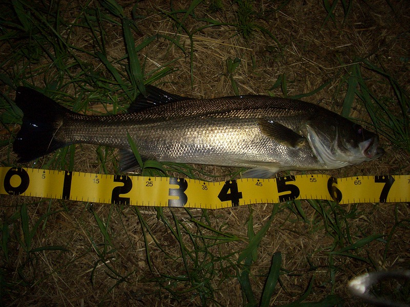 今週、皆勤出撃の為 「今日は休もうか」 と思っているとFさんより出撃メール! そしてLさんからも出撃TEL! よし!行くか!! という事で昨日Lさんが出したポイントへ Fさんと合流し、状況を聞くと50位のが1本出ました!と言う いつものようにランガンで沖の潮目、流れのヨレを打ち歩く 岸際にベイトが溜まっているので岸際を流してみる しかし、無常にもバイトしてくるのはゴミばかり。 そうこうしている内にLさんが合流し、Lさんが来るまで温存していた昨日のピンポイントへと移動。 Lさんは昨日と同じ立ち位置、ボクはまだ打ってなかった少し上流側を流してみる おそらく5・6投後。 「来た~」 Lさんのロッドが!! 上がってきたのは77㎝のイイサイズ♪ 「やっぱりココや!投げよ」 のお言葉に甘え、タックルボックスの中の戦士達と相談し、Lさんが釣ったルアーに近い戦士をチョイス そして同じコースを流していく 「コン」 乗らない・・・ その5・6巻き後 再び 「コン!コン!」 ギューンとあわせを入れると 乗った^^ そしてエラ洗い 一応、必死な抵抗をしてくれているみたいだけどあまり大きくない アッという間に岸際に寄せて最後のエラ洗い・・・ バラし>< ボクのバラしに 「またイダやな!イダやけんわざとバラしたんやろうが!」 とLさんからの冷かしが入る・・・ フックを確認してみると刺さりが悪い 一度車に戻り、フックを取り替えてからの2投目 同じコースで 「コツ!コツ!」 もっと勢い良く食え~~! と思いながらとりあえず合わせを入れると 「乗った!!」 魚が止まったのを見計らって2回追い合わせ!! さっきより重量はあるが抵抗がない リールをゴリゴリ巻いているとエラ洗い ここでやっとドラグを少し出される^^ お~中々♪ 久々のHITに慎重なやりとりを交わしながら魚の引きを楽しみLさんにランディングしてもらう^^ ややメジャーがヨレている気もするが・・・ オマケして702.2㎏ 昨日Oさんから頂いたメジャーが早速活躍^^ えへっ♪イダ、計りませんでしたよ イェイ!!! 約10日振りのシーバス と、同時にやっと外道の悪夢から解き放たれた!! Lさん、ボクと出たので次はFさん! 2人でくっちゃべりながらFさんのルアーの軌道に目をやる・・・ Fさんにバイトはあるものの乗らず、ここでFさんはタイムリミットの為、撤収! そして 「あと1本欲しいな!」 というLさんの言葉と共に2人で繰り返しキャスト再開!! すごくシャープなバイトはあるものの乗せきれない・・・ Lさんはその後55クラスを2本キャッチし 「また明日も来ようか!」 という言葉でSTOP FISHING!! 今日の1本は完全にLさんに釣らせて頂いた1本! 魚のいる場所と食わせ方を見つけ、少しずつ違うアプローチで数を伸ばしていく! 頭では考えていたけれど、中々やれていなかった事を実践で教えてもらい、これでボクの少し引き出しも少しは増えたかな・・・? いやまだまだ>< 今度はHITパターンを自分で見つけ、そのパターンで釣友、釣先輩達に楽しんでらえるような 釣りができる様になりたい!! この想いを胸に今日も出撃や!!!