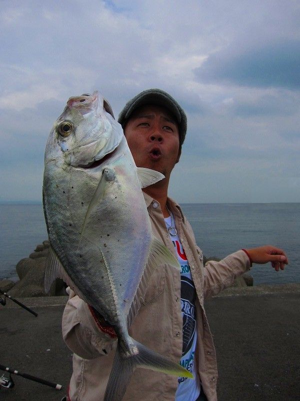 大分の秋のハイシーズンといえば・・・ コノシロ着きシーバス!! そのコノシロ着きシーバスをアマゾンペンシル等の デカプラグを使ったTOPゲームで豪快に釣っちゃおうよ~♪ と、いう事でカウパーゲームの先駆者である ヒロタカ丸に乗船!! しかし、しかし、、、 まだまだハイシーズンには少々早かったようで 中々厳C~ どれ位厳しいかというと・・・ 禁煙中の某氏も船長からタ〇コを貰って火を着けちゃうほど♪♪ 「じゃ~とりあえず、、、魚の引き味わいに行こうか・・・」 と、いう事で・・・ シーバスがダメなら・・・ 最近、ボクのツボになりつつあるウルトラライトジギングで狙うと・・・♪♪ ヤズやら 本命の?? キャンパチ~♪♪やら キャ♪キャッ♪キャンパチ~♪♪やら そこにはまた違った楽しい釣りが待ってました^^ 皆さ~ん、雨の中 お疲れでした~♪♪ 日付変わってナイトゲーム・・・ ボクの事を 「ガセネタ情報局員」に仕立て上げようと やって来たzatoメ~ン。。。 とりあえず... ガセネタ情報局員の座は何とか回避したい(笑) と、言う事で色んな可能性を考えランガン・・・ ランガン・・・ ランガン・・・ 最後の最後でやっと見つけたホットスポットで♪♪ とりあえず1本!! 正直、ホッとした♪♪ と、同時にオレも釣りてぇ~!! でも釣れな~~い(泣) すると、、、ヒラセイゴ追加のzatoメン... 手を変え、品を変えやって やっと釣れたと思ったら またまたヒラセイゴ~♪♪ 「あ~ぁ、、明日が休みならな・・・」 と、後ろ髪を引かれる思いで撤収するのでありました。。。 お疲れでした~Prt.2