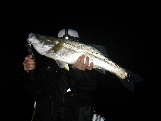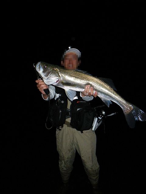スタートは午後1時。ド干潮のタイミングでまずはトップチヌから・・・ ポイントに到着し、いつもの仲間と ワイワイガヤガヤSTART FISHNG. 少し打っていくとこの日はペンシルよりホッパーの方が反応が良い模様。 ホッパーに変えてベイトがたまっているエリアをパシャパシャ引いていると 超ド派手に ノーズトゥテールの豪快バイトで飛び出してくれました サイズの割には良く引いてくれた元気なシーバス^^ その後みんなにバイト、チェイスはちょくちょくあったのですが HITまで持ち込めずナイトシーバスの部へ・・・ ここから長い間、沈黙の時間が続き、皆のヤル気が低下した所で Yさん登場。 実は、Yさんが来ると聞いた時 どこからとも無く 「こういう時に限ってYさんが釣るんよな~(笑)」 と冗談半分な会話で盛り上がりながらの合流。 そして・・・ ついに・・・ 神が舞い降りた(爆) ボクの上流側から 「ガバガバガバ~」 とエラ洗い音。 その瞬間、 「マジでやったよ~」 という言葉と同時に 腹の奥からこみ上げてくる笑いを止めきれず 終始、大爆笑♪♪ そうなんです!! 本当に釣っちゃったYさんに、笑いの神が舞い降りちゃいました!!!! で、ネタ(笑)になってしまった獲物がこちら・・・ 83㎝の立派な魚です。 でもランカーを釣ってこんなに笑いを取れる人って日本中探しても中々居ませんよw さすがっす!! 実は、次の日のジギングが天候の為にキャンセルになり 楽しみにしていただけにメッチャガッカリでしたが いつもの仲間と終始ゲラゲラ楽しく釣りが出来たのでか~なり満足^^ やっぱり、釣りは楽しく!! に限りますね!!!!