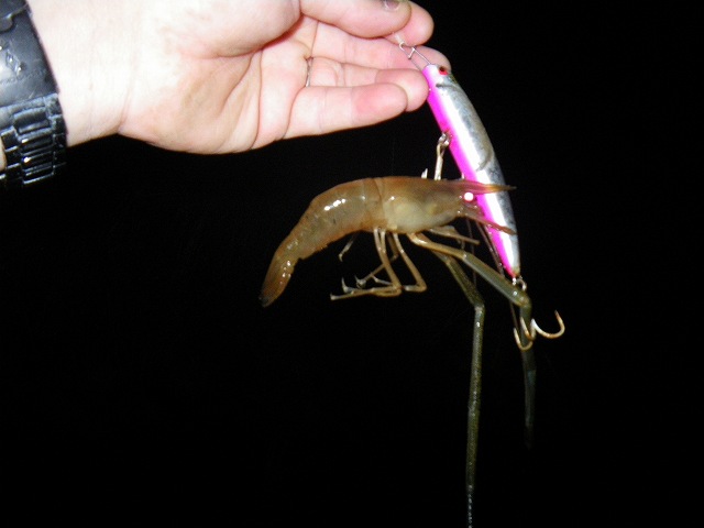 一週間の仕事を終え、向かうはもちろんホーム河川^^ ここ最近、釣友達がイイ思いをしたというポイントへ向かう! だが水面マーッタリ・・・ 何だか・・・釣れる気がしな~い><; それでもキャストを繰り返しているとキレイに 流れのヨレが発生!! すかさずそこを通すと スグに反応^^ デジカメ忘れ~の携帯で撮り~の画像悪い~の とりあえず60ちょいGET!! その後、またまた釣れる気がしなくなりメタボPへ移動 しかしここも気配薄ッ。 めげずにキャストを繰り返していると20㎝位のチビレGET! Yさんが合流し移動するもそこも反応なし・・・。 もう1箇所寄って帰るというYさんを残し 何だか疲れ果てて帰っていると 「シーバス祭りしてますよ!」 というYさんからのTELにUターンで向かう^^ ここまでは正直ヤル気が無くなっていたんで グダグダ気分で用意を済ませポイントに向かうと 一気にヤル気MAXになる音が♪♪ 「ボシュ!」 「ボシュ!!」 それも連続ボイル!!! 明らかにお食事タイム^^ ただ・・・ ボイルしている場所が場所で 激シャロー&激障害物という危険地帯・・・。 2人でどう攻めようか考え交互にアプローチ!! そしてボクの3投目。 ちょうどシーバスのお食事場所を通り過ぎた位の所 に着水♪ トゥイッチを軽く入れながら表層を漂わせていると 「ゴン!」 「バシャバシャバシャ!!」 場所が場所だけに魚に主導権を握られては すぐにラインブレイク・・・ ロッドをブチ立てて手でドラグをロックしながら 魚の走りを無理やり止め頭がコチラを向いた瞬間 ゴリ寄せです!!! ボクはバス釣りはやった事ないんですが イメージ的にはブッシュやカバーの中から魚をパワーで 引きずり出す感覚に似てるんじゃないかな^^ 激スリリング&ド迫力ファイトで 何とかキャッチ(汗) 60後半ですがお食事直後だからか 中々のプロポーションです^^ 1本取った後もシーバス達のお食事タイムは継続中^^ 次は同じポイントでYさんが掛けます! ガチファイトで何とか足元まで寄せた所でフックアウト・・・ ここで最悪ブレイクしてしまっても痛くないルアーに付け替え 「ポチョン」 もうこれ以上ない!!という最高のピンポイントに ルアーが着水♪ 狙い通り 「ゴーン!!バシャバシャバシャ!!!!!!」 先ほどよりサイズがイイ様でド派手に エラ洗い&テールフォークで応戦!! もちろんその間はドラグフルロックでガチファイト!!!! 何とか障害物を交わし 本日最大♪ ランカーサイズには届きませんでしたが 72㎝・3,4kgの中々の固体^^ 画像では分かりズラいのですが 背びれ辺りにキレイな斑点を持ったタイリクでした♪ その後、YさんGET!! ん? うむむ?? うむむむむ??? ゴミか?? え~~~~~~!!!!!!!!!! 手長エビ~~~~~!?!?!?!?!? ルアーで手長エビを釣る人、初めて見ました(笑) その後お食事タイムが終わったようでボイルが無くなり なんとな~くその辺を流していると 「ゴーーーーーン!!」 この日、一番の強烈バイト しかしサイズはこの日一番のチビっ子でした^^ その後いよいよベイトの気配も無くなり ここでSTOP FISHING. ボクが使っているPEは1号なんですがラインの強さと ドラグフルロックでガチファイトが出来る 自分のロッドの強さを目の当たりにした一日でした^^v しかし♪ アドレナリン出まくりのガチファイト、癖になりそうです♪♪
