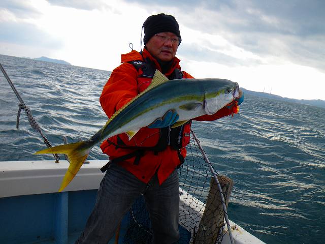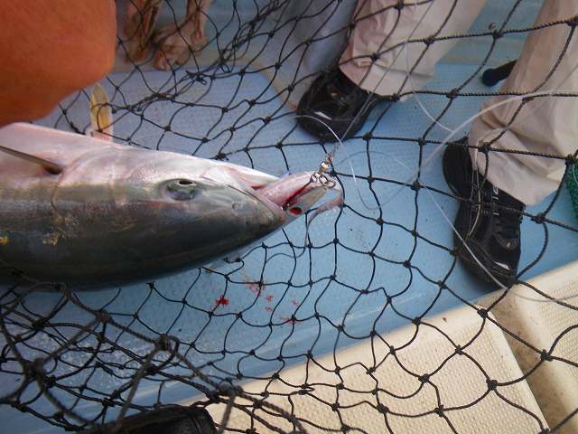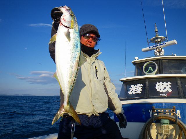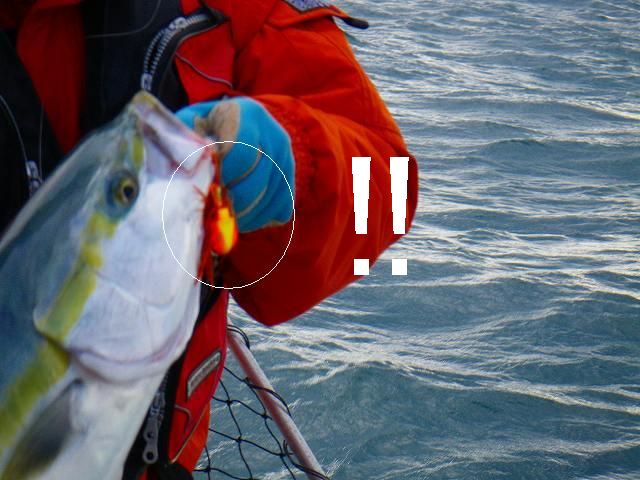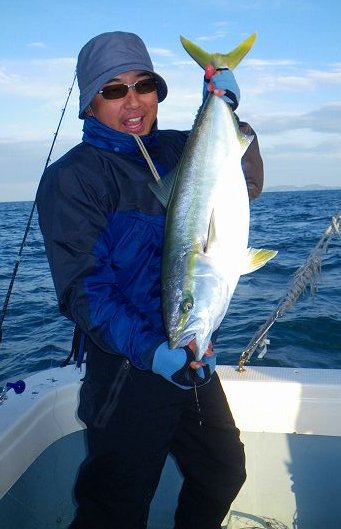 約2ヶ月ぶりのヒロタカジギング!! 崩れかけていた天候も何とか持ち応えてくれたので 出船です!! まずは、朝一の流し~ 幸先良くHITです!!! しかし・・・ 釣ったのはボクではなく同船していたリョ~ガ先生!! 7kgクラスの丸太みたいなお腹をしたパンパンマン♪ 次の流しで次々と同船者の方達も 6,7kgのメタボハマチを釣上げていきます・・・。 そんな中・・・ アタクシ、完全に乗り遅れました><; 同船者の方にHITジグを教えてもらおうと ネットの中のハマチ君を見ると・・・ ん?! ぺろ~~~ん?! 口から太刀魚~~!! すぐさまジグを替え ヒ~~ット!!! 名カメラマンの腕で5キロUPに見えますが 先に釣れた魚の半分くらいの3kgクラス><: 気を取り直し 次の流しで連続HITに成功しますが サイズダウンのヤズ君でした・・・。 その後は次第に渋くなり潮も止まったので移動~ まだ潮が効いていないようなのでインチクで 高級魚を狙いますが全くアタリなし!! インチクしたりジギングしたり優柔不断な釣りをしていた ボクを尻目に 同船者の方がライトタックルで・・・ ハマチ~ ん?? 鯛ラバでハマチ~~~~ あまりにもアタリの無いインチクに飽き ジグをシャクっているとボトムで HIT!!!! しかし、手ごたえ的にヤズか~っと ゴリゴリ巻いて浮いて来た魚は インチクではアタりが無かった こ~~きゅ~~ぎょっ!!! しかも余裕で自己記録サイズの48cm^^v いぇ~~~い♪♪ 嬉しさのあまり、上げちゃいました(笑) その後もデカブリ男様を狙ってシャクリ続けましたが ジギングの・・・ 魚はいるのに口を使わせられない状況を打開できず しゅうりょ~~~~です!! タフコンディションの中 お疲れでした~~~♪