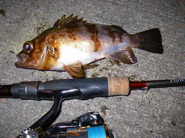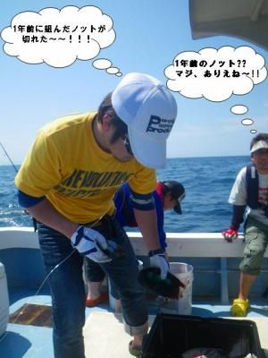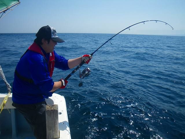 まずは金晩、ほろ酔いの中 仲間に迎えに来てもらい大名FISHING^^ 初めて行くポイントで 久々のメバル~~ ボクが1匹釣る間に仲間は同サイズの25UPを 5匹位釣っていたような・・・(汗) その後、恒例のメガアジ狙いに切り替えますが撃沈。。。 どうやらメガアジは移動した模様・・・。 そして日曜日!! 時化の予報をフッ飛ばし予定時刻を遅れる事、出港(笑) う~ん♪ イイ天気^^ しかし、この一枚でボクのデジカメ、充電切れで終了(泣) 思えばこの時点で本日の居残りが決まっていたような・・・ かなりの距離を走りポイントへ到着!! 初めて見る景色を横目に投げ倒します!! そして ボクのルアーに開始早々のHITで1抜け^^v って・・・ 釣れたのは 鳥さんですが(泣) 一瞬、「ブツ持ち」が頭をよぎりましたが 充電の切れたデジカメでは撮れず・・・。 更に追い討ちを掛けるかのような イルカの出現で船中一気に低活性・・・。 それでも途中、途中で良い反応を見つけては TOPを投げ込んでみたり、ジグをしゃくってみたり 凪の海を楽しみます^^ 完全に投げる事を忘れジグをしゃくっていると 同船していた、らんくるさんのTOPにバイトが!!!! 船中、目の色変えてキャスティング~(笑) そして同船者の方が 本日の初カウパ~♪♪ そしてボクのルアーにも嬉しい 「モア♪」&「ボシュ♪♪」 しかしノラね~~~~~ もどかしさを募らせていたボクを尻目に らんくるさん!! そしてzatoさんも続きます・・・ あれ・・・ あれれ・・・ 念のために辺りを見回す。。。 やっぱり 去年に引き続き取り残されたオレ><; ま~たこの展開(泣) 「釣れるまでミヨシで投げよ~」 っと、どこからとも無く聞こえて来る 同船者の皆さんの優しい言葉が妙に悲しい(汗) しかもzatoさん、、、 サイズUPの2本目釣っちゃってるし・・・。 そして、優しい皆さんからのアドバイスで ルアーを交換すると すぐさまド派手なバイト!!!! でもやっぱりノラね~~~~(爆) そんなボクを尻目に 「JUN君釣れんやったらダメっしたな~」 っと、zatoさん・・・。 途中、何度か泣きべそかきそうになり(笑) 「ダメっした×」 している自分の姿が頭をよぎるが強引にかき消し もう一つの葛藤と戦っていると・・・ 「ボシュ!!」 ん? んん?? 「乗った~!!」 「のった~!!!」 「ノッタ~!!!!」 ダメっした!!からの開放^^ やっぱりTOPは楽しい!!!! でも取り残されるのはメガ焦る(泣笑) 目指せ!! 次回は一抜けカウパ~(爆)