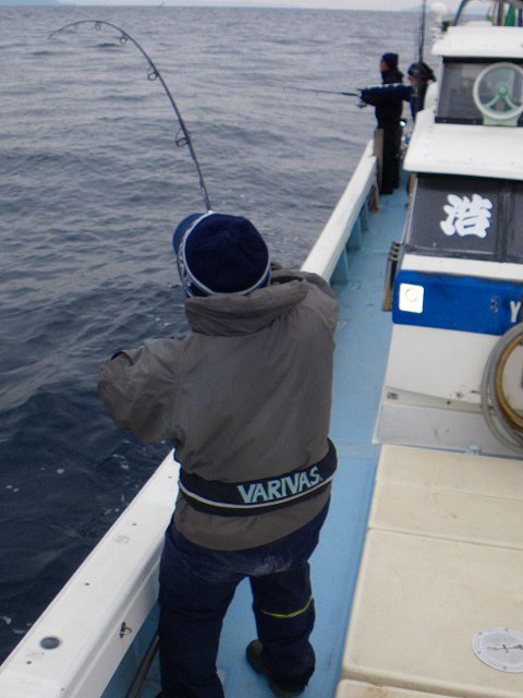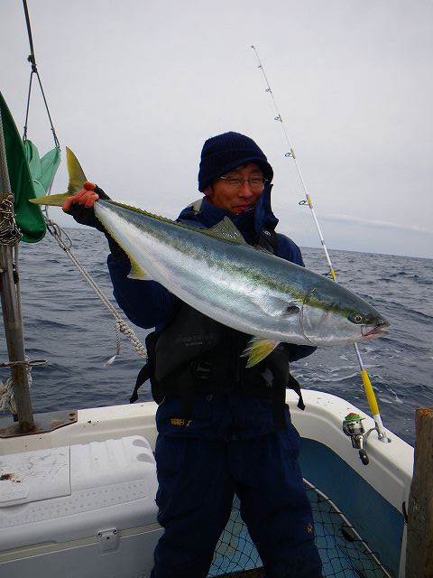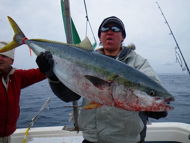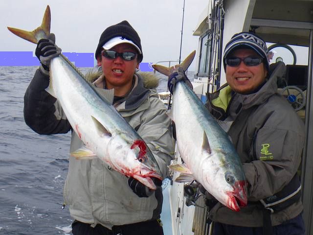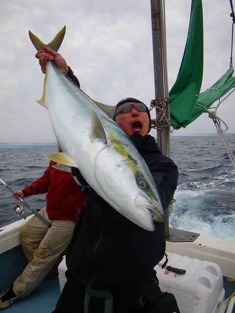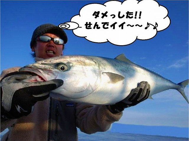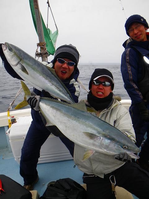 2.14 ハッピーバレンタイン!! 世間のメンズ達は本命のあのコから あま~~いチョコレイト貰ったり 貰えなかったりと 楽しい楽しいバレンタインを過ごしている中・・・ ボク達はお魚汁でイイ感じに生臭いバレンタイン祭りを 楽しんで来たっちゃ!! それでは、祭りの一部始終をどうぞ~~~♪♪ まずロッドを曲げたのは なぜだかお尻が白い(爆) 有名アングラー ガタピン!! 結局フックアウトで物持ちできませんでしたが 幸先の良い反応♪♪ その後すぐに 乗り合いの方キャッチし~の!! zatoさんキャッチし~のボクも続き~の!! 連続HITのzatoさん、サイズUPで10㎏サイズ釣り~の!!! ガッチャン、3度目の正直でキャッチし~の!! そしてJUN-Cさん、 焦りながらもNEWロッドに入魂し~の!! 殺気が消え~の!! 連続HITは11㎏で番長更新し~の!!! 本領発揮のガッチャンとダブルHITし~の!! マジタックルに持ち変えてデカいルアーで 自己記録の9㎏釣り~の!! 全員余裕のお腹いっぱい安打で終了です^^ あ~~~~♪♪ 楽しかった^^ 皆さん、お疲れでした!!