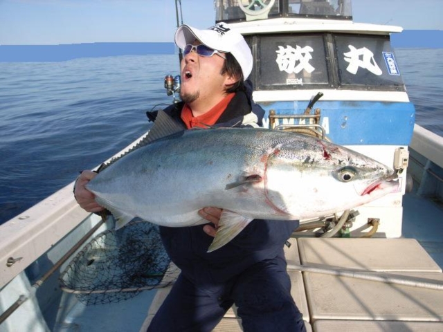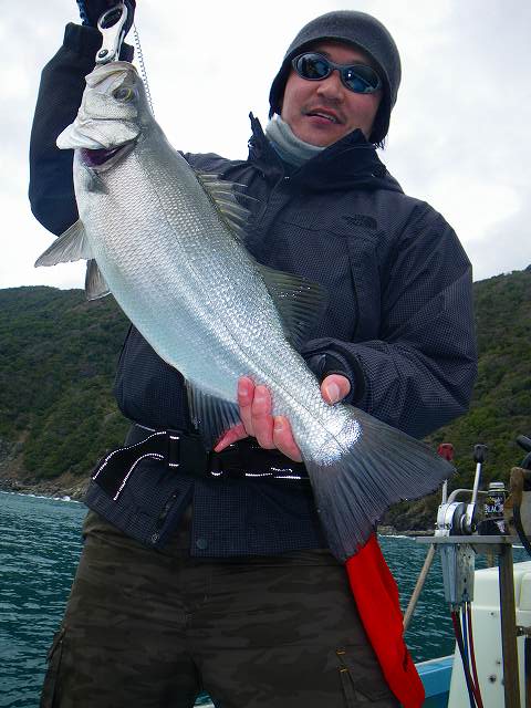 「波、高いな~。どうしようか~?!」 出船30分ほど前、いつもより荒れた海を見ながら船長と合流。 昨日からの時化の影響でイイ感じの荒れ模様。。。 いや、、、少し荒れすぎ・・・(笑) それでも 時間が経つに連れて回復の兆しを見せつつある天候に期待し とりあえず出船です^^v 途中、いつもより荒れた海のしずくを浴びながらポイント到着!! 開始早々、フッキングは出来ませんでしたが皆にバイト♪♪ 「今日はなんだか爆釣な気がするぅぅ~~~♪♪」 次のポイントでもみるからに状況も良く ボク以外の仲間にはバイトがあるそうですが 活性が上がっていないのか、ショートバイト多発・・・。 そんな中、本日の1抜けを果したのは Oさん!! とりあえず、前回のリベンジ成功、おめでとう!!!! そしてOさん、連続HIT!! 好調のOさんに便乗して2抜けでボクもGET^^v って、、、小っちゃ!! でもやっぱりヒラスズキの魚体はいつ見ても美しい♪♪ その後Fさんもキャッチし、とりあえず全員安打♪♪ そして、 そして、、 その後も (爆)とまではいきませんでしたが ポツポツHITし、量産体制♪♪ 「今日はサイズ出ないな~」 時間も経ち、かなり穏やになりつつある海を大きく移動しながら 船長がポロり(笑) そうです!! 残すところはビックワンだけな~んでっす!! そして次のポイントの1投目、今日一番の キャスト、流れ、サラシ、イメージ、タイミング、、。 複数の要素がドンピシャで噛み合った瞬間・・・ 「ゴチン!!」 よっしゃ~~~!! きた~~~~♪♪ 狙い通りの攻めで取れて大満足の73㎝^^v その後、Fさんのロッドがドラグ音と共に大きく弧を描く!!!! その光景を見た瞬間。。 「竿立てて~~~!!」 魚を掛けた場所が場所だったので思わず叫びながら ランディングサポートに回る!! 隣でファイトしてるFさん、何度もドラグ出されて超楽しそう♪♪ ヒラスズキのトルクフルなファイトを存分に楽しみ 85㎝のナイスワンゲット~~♪♪ Fさん、おめでとう!! で、終わってみれば数、サイズ共にみんな大満足で しゅうりょ~でっす!! よぉ~し!! 次のターゲットはマグロじゃ~~~!!!!