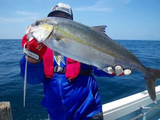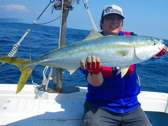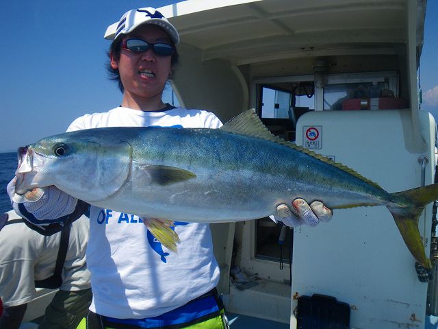 またまた行ってきました~ ピロタカ丸キャスティング~♪ え?! ジギングだっけな。。。 「まぁ~。いいやね~な~♪」 って事で、、、 午前中は夢を求めクルージング^^; 途中、ハンマーヘッドのチェイスにテンション上がるも あっさり見切られる~>< そんな中、一人抜け駆けを果たしたJB君。。。 ハマチGET!! この日のHITパターンを教えてもらい ボクもハマチGETッス♪♪ なんだか久しぶりの青物の気がする><: そしてお次はふ~ま君!! カンパチGET♪ 皆に続け!! と、zatoさんも最終兵器の 1年寝かせたアンティークノット搭載タックル投入!! で、即HIT~!! も、、、。 ラインブレイク。。。 そして、教訓!! 「ノットは半年に一度は組み直すベシ!!」 勉強になりまする(笑) で、この日を締めくくったのは ふ~ま君!! 途中、何度もラインを出され 「ヒィ~~ハ~~」 言いながら 10㎏クラスのブリGET!! で、終了です♪ 次回予告、、、 「zato CUP!!」 開催決定♪♪ 皆さんお疲れでした~♪