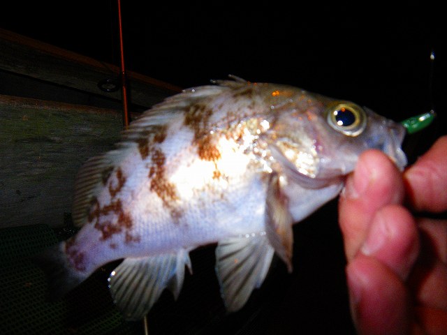 ヒラスズキ出船! が、天候的に厳しい釣りになるだろうと言うことで ジギング! あわよくばキャスティング!! にインチクプションを付けてみました・・・ 今回のメンバーはデリ~ちゃんとO君&A君!! さ~どうなる?! まずは、ジギングから始めますが・・・ しっ、しぶい~~~~ なんとか掛けたと思ったらエソのバイブレーション掛りで ただ重いだけ(泣) ジギンガーデリ~ちゃんがハマチ1本GETで ジギングは一人勝ち!! そして渋いジギングの合間に寂しい心を癒してくれる インチクへ・・・ すると、一流し目から 当たるわ!当たる!! のトリプルHIT!! 当たりが連発でうれC~~~~♪♪ 船中の活性が一気に上がります^^v 「あれ~?今日は3人やったかな~」 と、いう船長の言葉で後ろを見ると・・・・ ・・・ どよ~~~ん。。。。 一人取り残されたヒト発見です(笑) その後・・・ 乗り遅れたデリ~ちゃんも連発で追いつき ハタや、ヤガラやアラカブやらポツポツ上がります! しかし、中々数を増やせないボクをよそに 隣で連発のインチク名人のA君はコンスタントに数を増やし どうやらバイト数も違うようです・・・ 「何が違うんやろか~~??」 と、インチク名人の誘いを盗みながら ぽつり・ぽつり・・・ イマイチ、ハタの悩殺アクションは掴むことが出来ませんでしたが 美味しい魚のお土産、確保し~の ラストスパートでノリノリのデリ~ちゃん 高橋てっちゃんファイトし~の で!! しゅ~りょ~~です!! 皆さん、お疲れでした!! なんやかんやでメッチャ楽しめましたが こりゃ~ ジギングリベンジ、 行くしかないっしょ~~!!!!