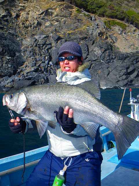 釣り人なら誰もが感じた事があるであろう 「1本の価値」 その1本に至るまでの過程が厳しければ厳しいほど 「それ」を手にした時の喜びは比例し大きくなる。 そして今日、幸運な事に 今年のOFF SHORE釣り納めで その価値をかみしめる事ができた^^ これはその前に釣った、今シーズン初のメバル~ この1匹に至るまでの過程も中々厳しかった~(笑) ・・・。 前置きはこの辺で・・・ 仲間から誘われた 今年最後のオフショアゲームの ボートヒラスズキ♪♪ 冬型気圧配置の影響で出船がモノ凄く微妙でしたが 幸運なのか不運なのか天気にも恵まれ 結構な凪の中(泣) 出船!! まだまだ薄暗い内に港を出発し 前回、コテンパンにやられた 凪の海の攻略が始まります!! が、開始早々 前回の惨敗のイメージが蘇ります(泣) あまりにも反応が無い激ハードコンディションに 「船長、癒しのエギングに変更しません?!」 って、言葉を何度も何度も飲みこみながら 西へ東へと魚を探し、走り回ってくれる船長に なんとか1本出そう!! と、がんばります!!!! そして、開始から6時間ほど経った所でやっと コツンというショートバイトを得る事に成功(泣) 超~~~~!!! 久しぶりの反応にモチベーションを上げ 午前中より濃くなりつつあるサラシを攻めて行きます!! すると、美味しそうなサラシを発見♪♪ イイ感じにキャストが決まってリトリーブを始めた直後・・・。 「ごん!!」 大きくアワセを入れた瞬間・・・ 「じぃ~~~~~~~~~!!」 乗った!! ・・・。 動かない。 根掛か?! と思った次の瞬間。 「じぃ~~~~~!!」 トルクフルなセカンドランを 少しずつスプールを抑えながら 深場に誘導。 そこまで大きくないか。と思っていたからか かなり冷静に浮かす事に成功。 やっとこさHITに持込んだ魚だけに 慎重に、そしてゆっくりと寄せに入ります。 そして、少しずつ近づいて来た魚体は でかい!! 絶対にエラ洗いをさせないように 慎重に、慎重に。浮かしていくと魚のヤル気が復活!! 心地よいドラグ音と共に走る! ひたすら走る!! 根ズレさせないように慎重にファイトし ランディング!!!! ネットの中の魚を見てガッツポーズ(笑) 87㎝、8.1kg!! 念願のランカーヒラスズキ!!!!!! でかい! 太い!! カッコイイ!!!! な~いっす、ぼで~~♪♪ すると・・・ 余韻に浸っているボクを尻目に隣では 目の色変えてキャストしている仲間たち・・・(笑) フックが伸びてしまったルアーを交換し テンポ良く探っていると 連続HIT!!!!!! に成功しましたが、重戦車のようなファーストランに 全く頭を向ける事も出来ず根ズレでラインブレイク(泣) 完敗><; その後、仲間もHITに持込みますが惜しくも バラC~~。 港に戻り、正確に計測した結果、 ボクが釣った魚は みなの丸、ひらすずきダービー暫定3位^^; 激シブな状況に取れた1本で 今年のオフショアゲーム しゅ~~リょ~~~~!! みなさん、お疲れ様でした^^v