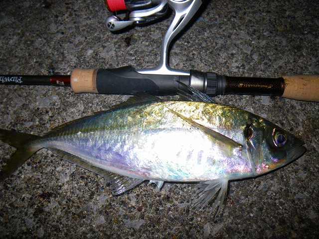 大分、更新が遅れてしまいましたので バタバタの更新です。。。 最近は、もっぱらライトゲームに夢中でした!! ある場所で40㎝UPのアジが釣れてるという情報を 耳にしたので早速、行ってみると カサゴしか釣れなかったり(泣) 手堅い場所に移動してやっとこさ このサイズと出会えたり(汗) と・・・ 釣れる時には何しても釣れるアジに コテンパンにヤラれながらも 何だかんだで楽しんでいます^^ そして週末は TEAM STONE OCEAN 主催の ジギング大会に参加してきました♪♪ 大会の開催を祝うかのように サプライズゲストのイルカ君達も登場しているようで 状況は超~~~厳しい><; そんな激ハードコンディションの中 ジギング初挑戦の 初代チャンプが誕生!!(祝) ツッコミ所、満載の賞品ですが 詳しくは↓↓ TEAM STONE OCEAN にて♪ 結局、最後は癒しのズ~ヤ~の 丸呑みパックンチョで しゅ~~~りょ~~です!!! 釣果的には厳しい一日でしたが 皆でワイワイ楽しい一日でした^^ でもやっぱり・・・ ジギングよりキャスティングの方がいいな~~(爆)