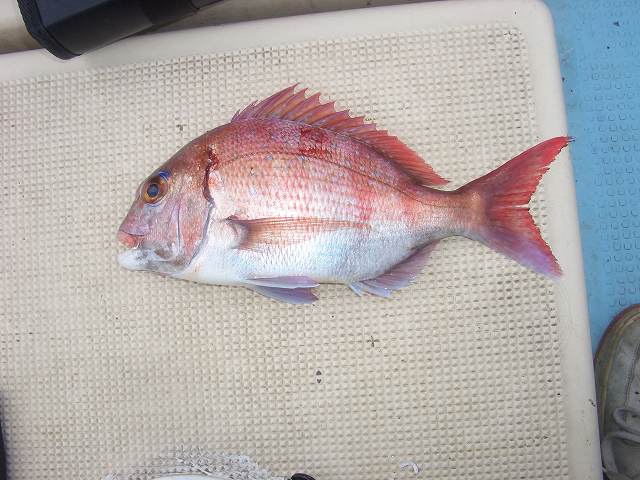 行ってきました! 待ちに待った浩敬丸ジギング! と、その前に前のりしていたかぼさんに遅れること AM2:00 フォーミングアップシーバス!! 家を出る前に電話すると すでに15本は釣っているらしい・・・ ポイント到着後、中々HITルアーを見つけられず キャストする事、4戦士目・・・ 「コツン」 のショートバイトを鬼あわせで 82㎝ その後ポツポツ釣れるも 60~70㎝ 時間も迫ってきたので Oさんと合流し早速出船!! なんともキレイな朝日に迎えられ気分はルンルン♪ ・・・ ・・・ ・・・・ しかし・・・ 反応はあるものの全くジグには見向きもしてくれない 今日のブルー><; 激渋(泣) 最後の流しで同船者にHITするも 無念のフックアウト・・・ ポイントを移動し しゃくる・しゃくる・しゃくる!! 待望のHIT!! も30㎝位のかさごちゃん。 ジギングのあまりの渋さに 途中鯛ラバを落とし込みます! 「ぶるるっ」 という反応から 「ごごごっ」 でフッキング!! かさごちゃんよりは手ごたえを感じます♪ なんだろうな~♪ で 上がってきたのは なんとも可愛らしい真鯛ちゃん^^ まぁでも良しとしよう! 同船者も鯛ラバ・ジギングで カサゴ、ヒラメ、良方マダイとお土産を確保!! しかしそこにブルーはいない(泣) そして 途中、雲行きがあやしくなり 風も出て波も追加。 それでも諦めずしゃくり倒しましたが そのまま STOP FISHING. 釣果はかなり激渋でしたが 一日しゃくり倒し遊び倒したのである意味満足!! よ~し!!!! 来月、リベンジやっ!!!!! その前に筋肉痛の体を リフレッシュフィッシングで癒されてきます^^v